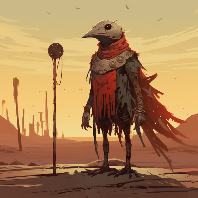 Peri come in a variety of colors including iridescent blacks, blues, and desert tones, with familial variation in the head and beak shapes. Heights average 6.5 feet tall, with weights between 80-130 lbs owing to their lighter bone structure. They have vestigial wings with an average wingspan ratio of 1:1, which are not powerful enough for flight, barely allowing short distance gliding. Their plumage is prized amongst artisans for a variety of uses, and are sourced from both voluntary and involuntary individuals.