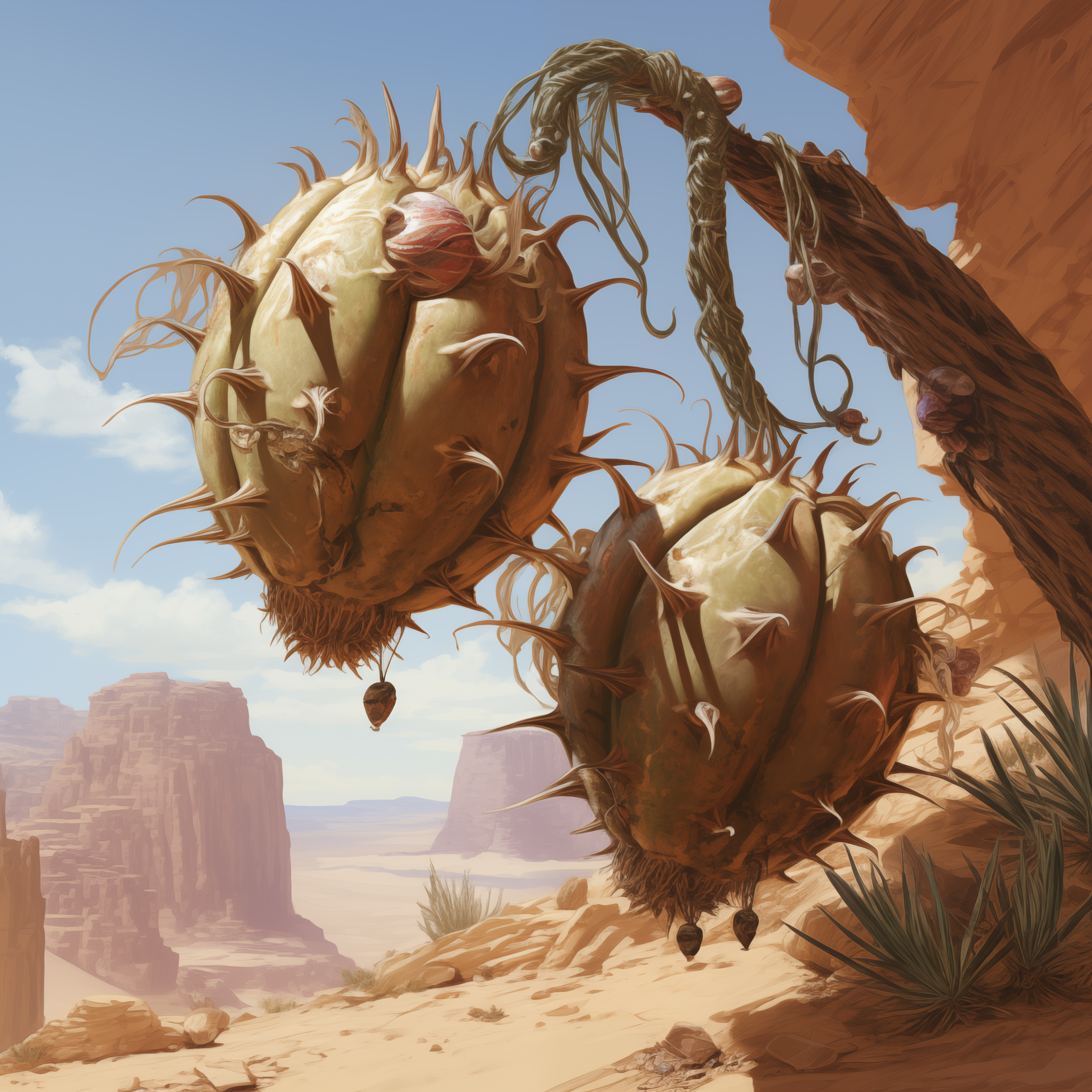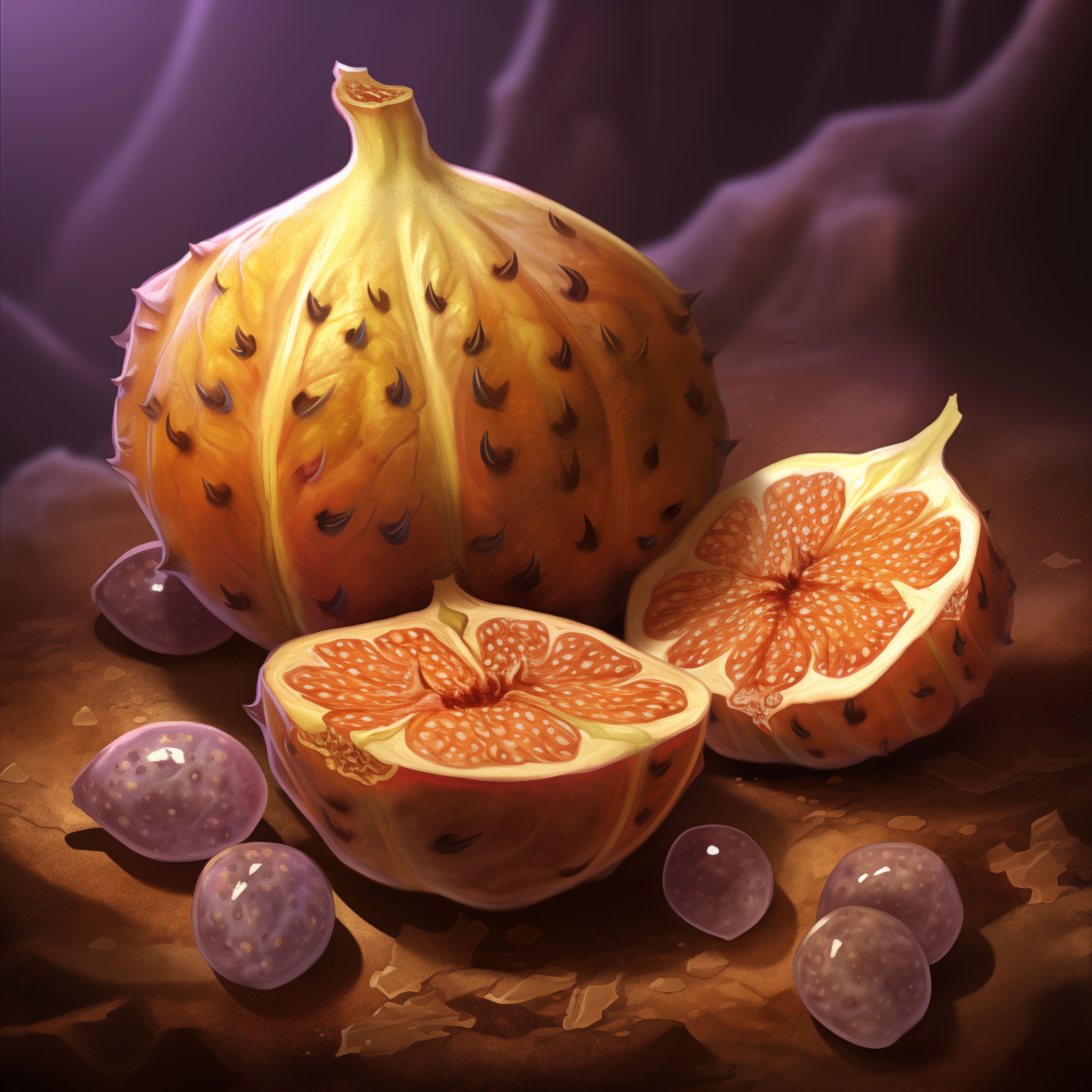 The fruit’s flesh is succulent, bursting with a blend of sweet and slightly tangy flavors, with an aroma reminiscent of honey and wildflowers. Despite its appeal, the Garzan fruit is notoriously difficult to cultivate. It grows naturally in only the harshest and most remote parts of the desert, thriving in conditions that are nearly impossible to replicate elsewhere. The plant itself is delicate and sensitive to environmental changes, requiring a precise balance of extreme heat, rare soil nutrients, and just the right amount of scarce desert moisture.